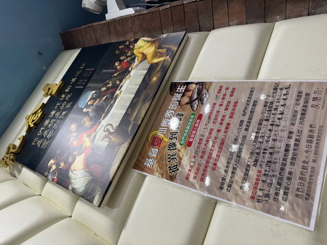 晚上阴差阳错走进一家基督教餐厅,墙上贴满了传教文字,顾客多是香港的爷爷奶奶们,我和同学一进门就被围观,因为我们的存在实在显得新奇和格格不入,好在这种围观是完全善意的,旁边的爷爷还为我清出一个位置坐下。